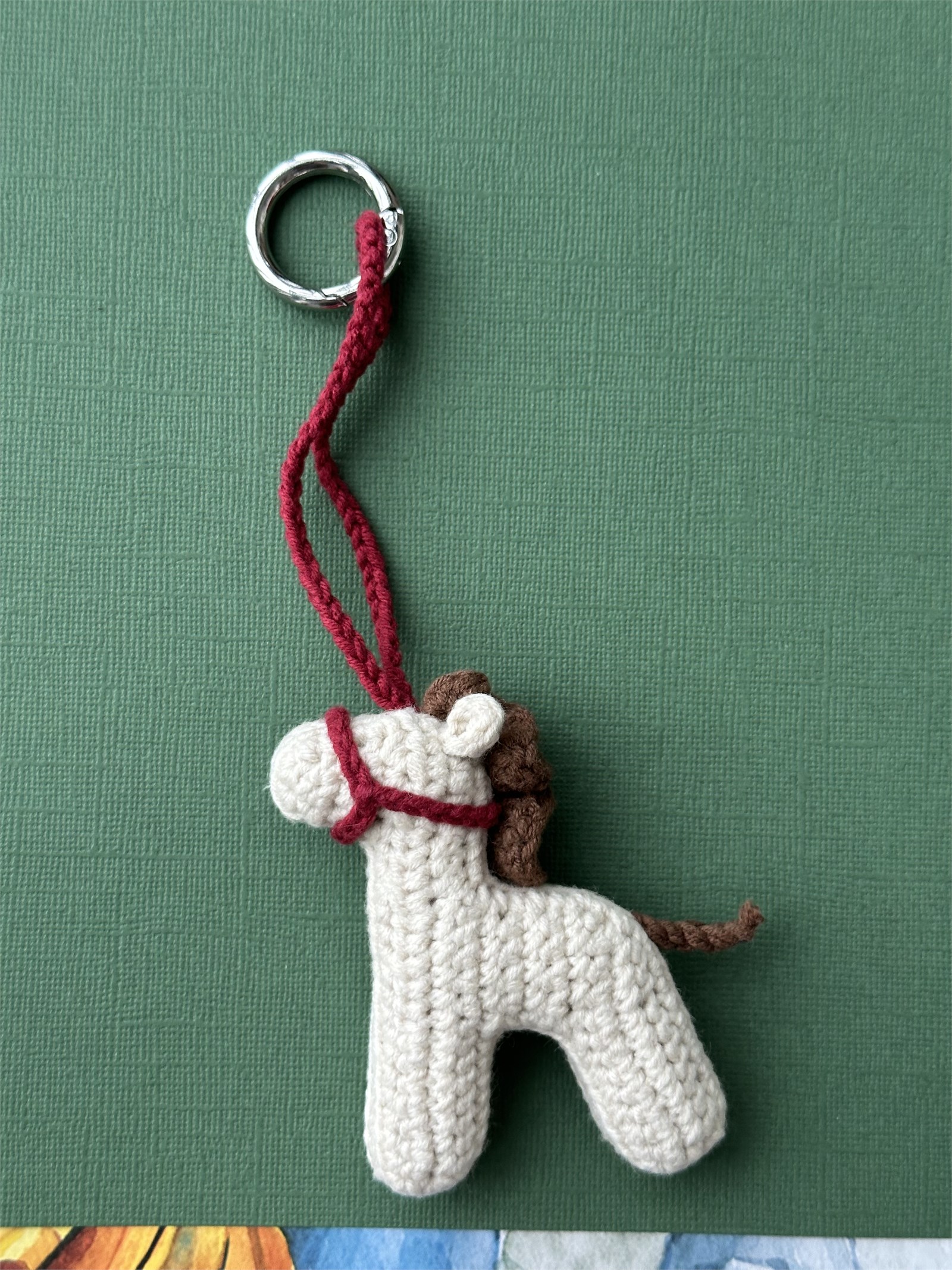 Брелок обвес на сумку ЛОШАДКА ручной вязки с карабином из ювелирного сплава с родиевым покрытием. Длина 20 см